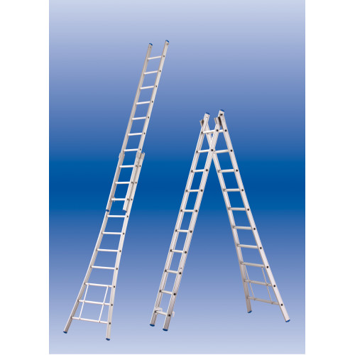 BOUW-LADDER, 2 X 12 SPORTEN, OPEN VOET, VRIJSTAAND