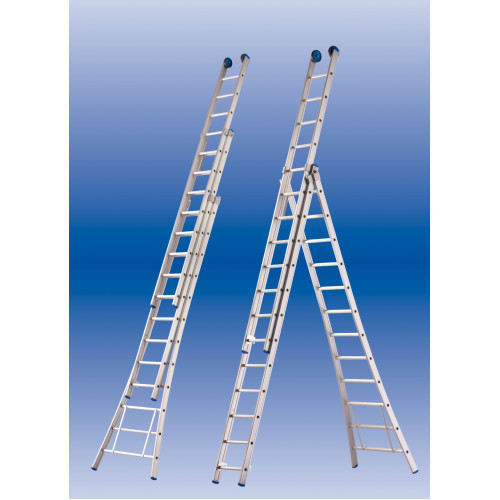 BOUW-LADDER, 3 X 12 SPORTEN, OPEN VOET, VRIJSTAAND + VOETJES